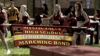 Mrs. Lockwood announces each float as it passes by: the Mystic Falls marching band float, the Battle of Willow Creek float, the Miss Mystic Falls float, and a Mystic Falls football team float. While Bonnie is watching, Damon interrupts her and thanks her for deactivating the Gilbert Device. Even though she really didn't, she says that she did it for Elena.