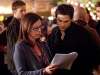 Mayor Lockwood is also shown to mysteriously pass out. Several cops find Anna and take her also. The cops are dragging the vampires into the Gilbert building basement, along with Mayor Lockwood. Anna grabs John's leg, and he stakes Anna himself, while Damon helplessly watches. John pours oil over the basement floor and on some vampires and lights it on fire killing most of everyone in it. Stefan says that the device felt like needles were piercing his skull. Alaric explains that the cops were taking the vampires who've gone down to the Gilbert Building. Stefan and Elena now find out that Bonnie didn't really deactivate the device.
