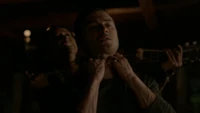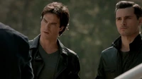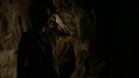 Damon is still in the Vault and texts Stefan to prepare the bourbon to celebrate. He calls Bonnie to talk and during the call he hears Elena's voice in the cave. Enzo comes to the Vault some time later to help Damon, but a creature in the Vault grabs him as well and the door shut sealed.