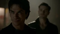 Damon talks with Stefan, Caroline and Enzo about the plan to kill the last Everlasting located in The Armory's Vault. After trying to open the Vault with explosives, Damon suggests using Caroline's twins' syphoning abilities to open it. Caroline mentions to Stefan that Lizzie syphoned her the other day, so that she has the abilities, but Caroline's not ready to involve them in the supernatural world.