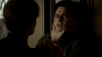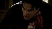 In Crying Wolf, Carol introduced Elijah Mikaelson, masquerading under the false name of Elijah Smith, to Damon, who had attended the party just to meet him. When they were talking in an empty room, Damon tried to attack Elijah, but Elijah ultimately won the upper hand. He then called Damon arrogant before he stabbed him in the neck with a pencil. He also reminded Damon that he is an Original vampire, and that he left Elena with him so that he could keep her safe and to abide by his deal with her, but that he would have no problem killing him should he cease to be useful to him. Once they finished talking, Elijah left Damon bleeding in the room and rejoined the party.