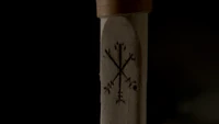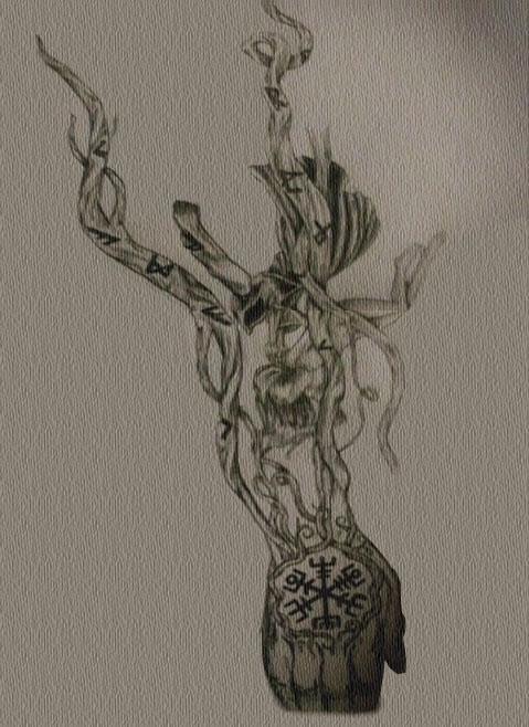 The mark has several images linked by roots, runes, and stones.