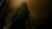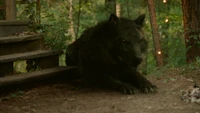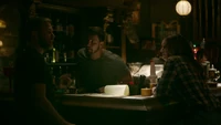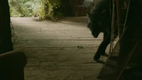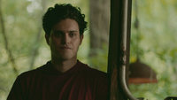 When Alaric leaves, he bumps into Landon, who is collecting meat to cook for Rafael, who is still stuck in wolf form. We see Landon cooking the meat, who jokes that Rafael once told him he wouldn't eat something that Landon had cooked. Despite Rafael being stuck in wolf form, Landon ironically promises to "never give up hope".