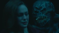 The episode ends with another creature coming after Hope, having escaped from Malivore. In Malivore, Ryan questions what Malivore wants from him and begs for one last chance to serve him. He pleads with Malivore to send him back. A portal opens and Ryan questions if it is Malivore, but we cut to Mystic Falls cemetery to see a witch stood inside a fire symbol in the shape of Triad's logo.