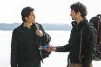 Back in the present, the Silas-seeking party disembarks: Shane, Jeremy, Stefan, Damon, Elena, Rebekah and Bonnie. They're 200 miles off the Nova Scotia mainland. Shane tries to convince Rebekah to play nice with Elena, who responds by charging her and trying to stake her. Damon assures Elena that Stefan only brought Rebekah to show Elena he's moving on and to show Damon that he can't get under his skin.