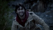 Jeremy pauses for a drink of water and from in the woods, a man draws back a bow aimed at Jeremy. Before he can react, the man falls dead from a hatchet thrown in his back. He doesn't know who threw it. Shane takes them to a place where, legend has it, a group of college kids were all drained of blood on spring break. Damon argues to keep going.