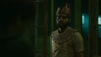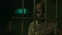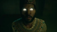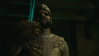 Alaric talks with Dorian about the riddle given by the sphinx, and the two manage to figure it out. They reveal what they have found to the sphinx, including that they know he follows someone other than Malivore. With this, he tells them another riddle, before killing himself, turning to dust before their very eyes.