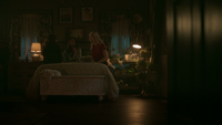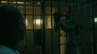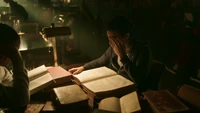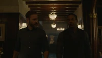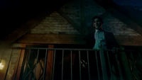 Meanwhile in the werewolf transition space, the sphinx is locked up and guarded by Rafael, who is reading books and lore about him. The sphinx asks him a riddle, which he is easily able to answer. This prompts the sphinx to reveal that he is an oracle, and gives Rafael one question to ask. Rafael asks how he can possibly keep Landon safe, but the sphinx reveals that Landon will never be safe whilst at the Salvatore School; a revelation that shocks Rafael.