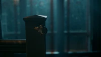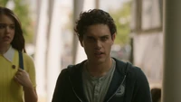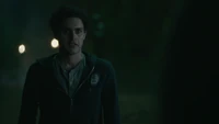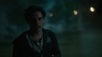 Landon goes to the lake behind the Salvatore School with a concrete block. Rafael arrives before he can do anything and asks what he is doing, with Landon replying that it is a safety measure as the sphinx cannot take him if he is dead at the bottom of the lake. Rafael is angered by this, but visibly upset at the same time. He tells Landon that the sphinx revealed there is no way to keep him safe at the school, which confuses Landon as he worries the sphinx will see their plan coming.