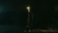 Hope tries to flee from Clarke by jumping out of the window, but is severely weakened. She shouts for someone to help her, but there is nobody around, and Clarke quickly catches up to her. Just as he is about to stab her with the trident, however, Landon approaches and is able to fight him off. Landon and Clarke fight for a while, and Clarke tells him that he doesn't understand Malivore's obsession with him. Landon eventually manages to restrain Clarke, and tells him to stab him instead with the trident, which he does. After this, Landon reveals himself to be Simulandon, and tells Clarke that now he will die the following night instead. Clarke is annoyed at this when his consciousness switches over, but Hope is able to break the shackles and throws him back with a blast of energy.