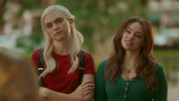 Josie is with Professor Vardemus, and expresses her feelings of anger and her feeling that she is second-best. However Vardemus tells her she is anything but and is an extremely powerful witch. He hands her the trident form earlier and tells her to repeat after him a spell to harness all of her anger. She does so, and Vardemus begins wincing, before his disguise fails and he is revealed to be Ryan Clarke. Before Josie can say anything, however, she passes out.