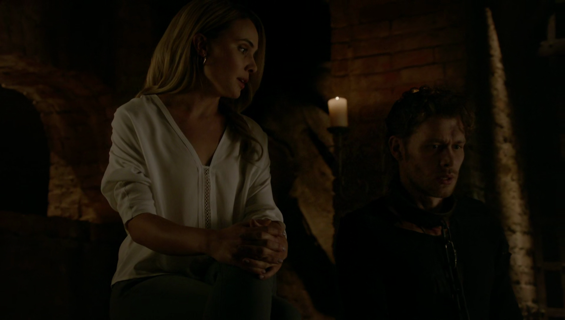 In No Quarter, Klaus has been recently stabbed once again by Papa Tunde's blade by Marcel. In this particular episode, Klaus hallucinates having a full conversation with Cami. This scene was the first scene they shared together which entailed a full on conversation since Cami's death years back. While Klaus continues to suffer in pain, Cami suddenly appears asking Klaus what he did this time. Klaus was surprised to see her since she was dead. Cami then corrects him that she was just a part of his imagination and a way to distract his brain from the pain, so his mind conjured up the first thing it could think of to temporarily suppress his pain: Cami. Klaus stubbornly claims that he can endure the pain, but Cami ultimately disagrees with him and points out his darkest fears are active while being trapped down there. Klaus angrily retorts her claims, but she continues to press until he gives into her emotionally. Klaus claims to miss her and his daughter but also believes to be a darkness to them all, even now. However, Cami reminds him of his sacrifice and how he saved his family, and that they will return the favor and save Klaus. Klaus then expresses his worries of his family being caught if they do come for him. Cami then presses him to find his way out of the underground Abattoir.
