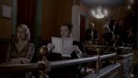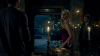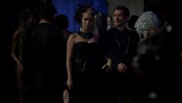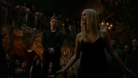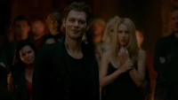 Rebekah and Stefan were dancing together, while Klaus was sitting alone drinking. Suddenly there were gun shots and glass breaking everywhere. Klaus finished his drink, and stood up. He pushed through a crowd of people, in search of Rebekah. Rebekah was hiding behind the bar with Stefan, when she realized what was happening. She stood up, and Klaus grabbed her arm. Rebekah dropped her necklace, and Stefan went to pick it up when Klaus flashed in front of him. He compelled Stefan to forget about Rebekah and him, then he flashed out.