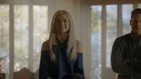 Hope reads the answers prepared for her by Lizzie, and Hope questions why all of the answers are pertaining to grief. Lizzie tells her that she and Dana's mother are alike, and playing on her grief could get them points. Lizzie shows Hope a blue dress — the same dress Klaus gifted Caroline in Dangerous Liaisons — telling her it was her mother's but they can adapt it to fit her.