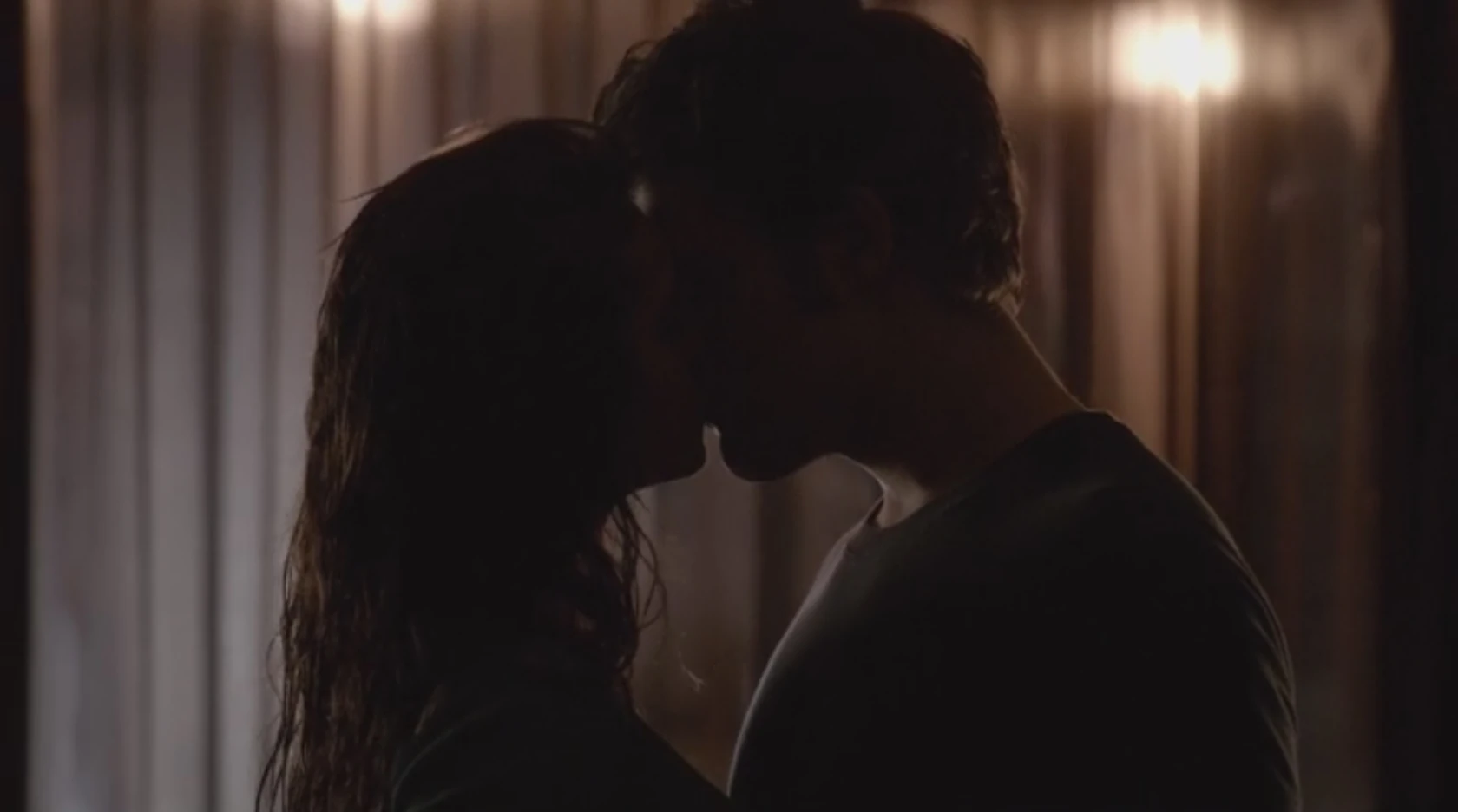 - Katherine is nearly successful in seducing Stefan in their motel room after they kiss, but is interrupted by a call from the mechanic about Stefan's car.