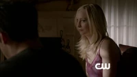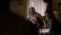 Back at the gas station, Stefan finds the piece of his car Katherine ripped out. He asks her to hold the part, noting it has grease on it. When he's looking into the engine, she rubs grease all over herself. Then she cutely suggests they get a room at a nearby hotel to shower and change. He tries to insist on staying with his car while it gets fixed, but she convinces him to join her. Back at Tyler's house, Matt spins a yarn about being on the way out of town but finding Nadia waiting for him on his front steps. She tells Tyler she feels bad about snapping his neck. Matt says he lost his phone and they were in Atlantic City, but Caroline isn't buying it. She tries to compel Matt to tell the truth, but he gives the same answer with his vervain bracelet on. Nadia turns on Caroline for being judgmental over Matt's romantic choices given her own. She tries to draw Tyler into it, but he leaves. Caroline follows Tyler, not able to believe he's buying their story. "It's a hell of a lot easier to buy than other things that have happened," Tyler says as he walks out the door.