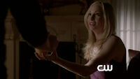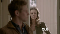 Katherine joins Nadia in a diner. She giddily tells Nadia that she had a moment with Stefan. Nadia is disappointed that it's all Katherine cares about. "I'm in a really good mood right now, which means I don't want to have to worry about whatever's making you mopey," Katherine says. "You won't have to worry about me much longer," Nadia says. "Tyler Lockwood bit me." Nadia reveals a bite on her arm. Back at the Salvatore house, Caroline shows Stefan her "Help. K" text from Matt. Stefan tells Caroline that Elena (Katherine) is acting strange and kissed him. Caroline doesn't understand, and knows that would destroy Damon. He tells her Damon's theory, but Caroline doesn't think Elena would ever want Damon dead. "Unless... Matt texted you 'Help. K' before Nadia stopped him. K. As in Katherine," he says. He remembers Nadia trying to transfer Katherine's spirit to her as she was dying. "But that didn't happen because Katherine had a change of heart," Caroline says. Then they both realize what actually happened.