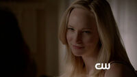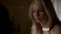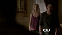 At the Salvatore house, Stefan quizzes Katherine-in-Elena on dates in history. She knows a little too much about the Holy Roman Empire, which Katherine lived through. Stefan takes note. She quickly tries to cover, saying she did a paper on it in high school. Caroline comes by with police reports from her mom. Katherine is annoyed to have her alone time with Stefan interrupted. The police reports show a string of people found inside their own homes with their heads ripped off and skin desiccated. Stefan realizes it means Damon is feeding on vampires. Stefan tries to blame himself, but Caroline won't allow it. Caroline is surprised to see Elena there, and doesn't buy her excuse that Stefan—who doesn't go to college—was helping her study.