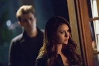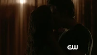Back in the motel room, Stefan gets word that his car is fixed. Katherine showers and does everything she can to tempt Stefan, including leaving the door open when she gets dressed. She walks over to him with dripping wet hair and presses up against him. She kisses him. He tries to resist and finally breaks away, saying it's wrong because she just split up with Damon. She apologizes and suggests he settle the bill while she finishes packing. When he leaves, she enjoys her first victory. She calls Nadia, wondering who Stefan loves more: Elena or Damon. She wants to make Damon attack her so that Stefan has to kill him to save her.