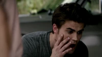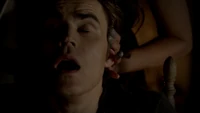 Stefan is walking around when he comes across a bar. He enters and finds Jo, a bartender. He feeds on her but stops himself from killing her. He tells her to run. She does but he soon follows. as he gets outside, the sun comes up and he begins to burn just realizing that doesn't have his daylight ring on. Elena wakes up in bed after having another nightmare, after Damon asks what's wrong, she admits that it was a dream about Stefan again, but Damon says he doesn't want to know what happened. He eventually relents and she tells him that Stefan was at a bar but doesn't know where, Katherine then makes her presence revealing that she had the same dream. Elena is then looking at a map in order to find which diner to go to. Katherine demands to go with them and while Elena has reservations, Damon mentions how Katherine is wanted by Silas.