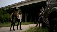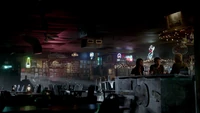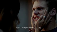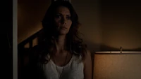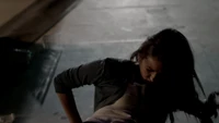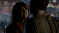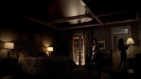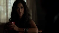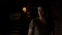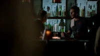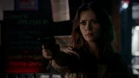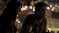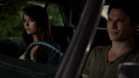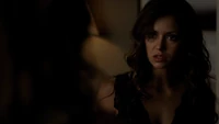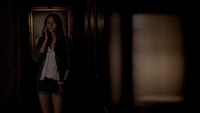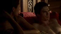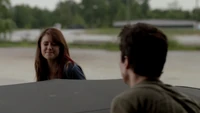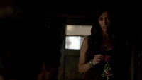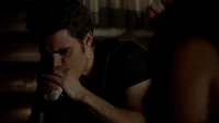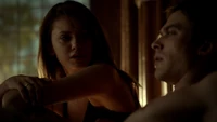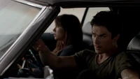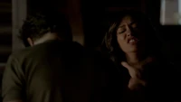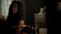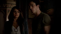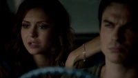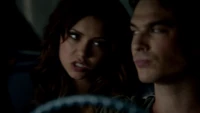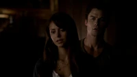 Elena & Damon finally arrive at the bar and enter leaving a sleeping Katherine in the car. They enter and find Jo, who has a bandage around her neck. Damon compels her to tell him what happened and she reveals about Stefan attacking her and then him burning before Qetsiyah threw him into a truck. She mentions how she knows who's truck it was and directs them to the hut. Before though she offers Damon a drink and he accepts until he realizes it is filled with vervain. Nadia comes in telling them that she threatened Jo's life if she didn't do it. Katherine enters as Nadia aims a gun at them. She demands to know which one of them is Katherine, and Katherine points at Elena, but Nadia mentions how Katherine is a liar and knows it is her. Elena tackles Nadia and tells Katherine to run which she does. Nadia is able to fight Elena off and escapes with super speed. Elena tells Damon to find Stefan while she goes after Nadia. Damon tells her that if there is trouble to leave Katherine saying she is not worth a hair on her head. They kiss before they part ways.