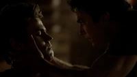 Damon tries to wake Stefan up but he doesn't. Damon demands to Qetsiyah to reverse what she did but she reveals that he will wake up. She then reveals to Damon how if he lets Stefan go and take him with him, then he and Elena will be doomed, she reveals that over 2000 years, versions of Stefan and Elena have found each other and fallen in love. She then offers Damon that if he leaves Stefan with her, she will look after him and then Damon can be happy with Elena. He contemplates this until he attacks Qetsiyah. Qetsiyah though knocks him out. Qetsiyah leaves and Elena arrives and goes straight to Stefan not even noticing Damon.