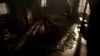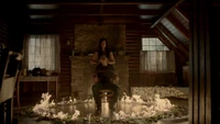 Damon arrives at the hut and finds Stefan tied up in veins on a chair. He tries to free him but can't. Stefan mentions how Qetsiyah is back. Qetsiyah reappears and tells them that she is going to create a link between Stefan and Silas so that she can disable Silas' mental powers. Despite Damon's reservations, Stefan agrees to it.