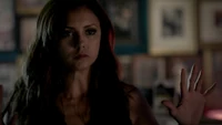 Katherine is running in the woods when Elena catches up to her. Katherine mentions how she is glad to see Elena. She then asks why Elena didn't kill her after giving her the cure, but Elena says that she is not like Katherine and that being human is punishment enough for Katherine. Nadia appears and snaps Elena's neck and threatens Katherine to come with her.