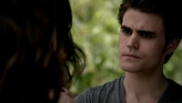 At the manor, Elena is sitting next to Stefan who is still out of it and puts his daylight ring on his finger. Damon comes in and she asks him what Qetsiyah said to him. He mentions how Qetsiyah said that their relationship is doomed and that the universe is working against them to get Stefan & Elena together but he says he is not going to let a jilted witch or the universe to control his life and that Elena is his world. They are about to kiss when Stefan wakes up. They are glad to see him but he looks perplexed. He then apologizes to them and reveals that he has no idea who they are.