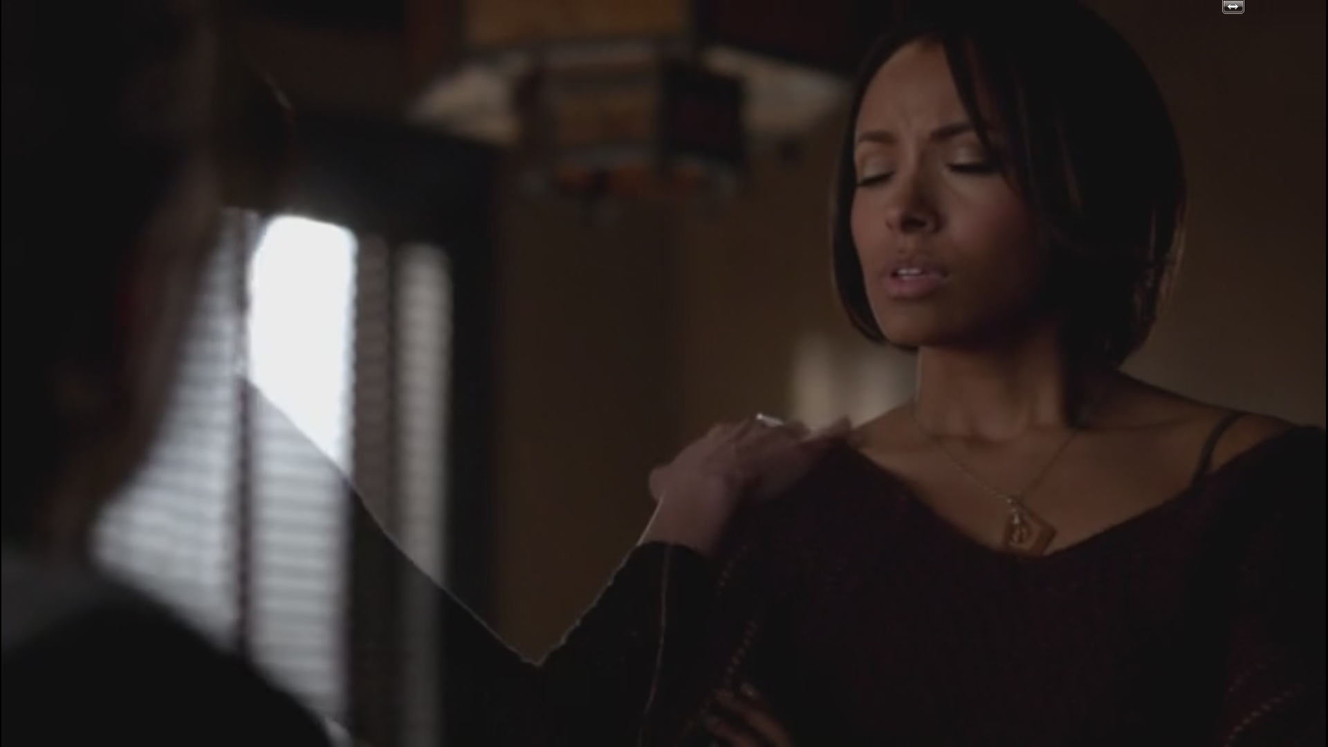 Stefan and Caroline share a moment.
