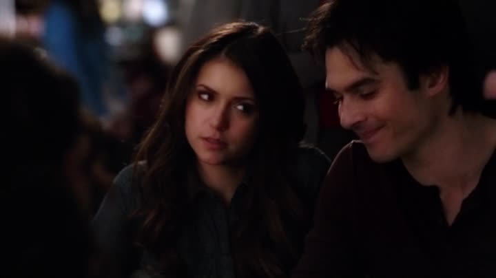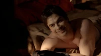 Elsewhere, Elena wakes up in bed next to Damon and she sees that it is 12:00 pm and it her scheduled time for her to meet up with her brother Jeremy's parent-teacher conference. She walks out of bed and she tries to leave but is started by a suddenly awake Damon who greets her with a "Good morning, sunshine!" and Elena startled asks if she woke him to which he answers that he's been awake for three hours. Elena asks him why he didn't say anything and he reverses the same question to her and she says she did not really have much to say and nothing's changed and they are still broken up and the night of passion they'd shared was a mistake. Damon then sarcastically says that maybe they should continue to make "mistakes" — big ones. Elena is then motivated to leave, but Damon steps in her way and she tells him to put some clothes on or at least get out of her way. Damon tells her that it is her loss and Elena manages to leave.