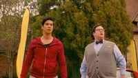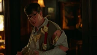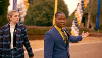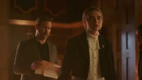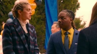 Meanwhile, Alaric leaves the school to try and get a loan from the bank and leaves Kaleb to assist Lizzie, tasking him to not allow anyone to use their supernatural abilities to influence the fundraiser.
