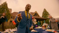 Outside, Jed and Wade sit and talk, having no cars to wash. However, given the leprechaun's influence, Jed is able to hear loads of cars and people from Mystic Falls coming to Fundraiser day. Taking charge, Jed commands Wade grab the hose, to place the kitchen on high alert and for Cleo and Hope to crank out the art. With townspeople showing up en masse, Lizzie kicks off the art auction, selling various paintings. Kaleb helps with the bake sale while Jed and Wade wash cars. Fundraiser day is a success.