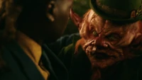 Eventually Kaleb has found the culprit, a leprechaun, and they trap it in the werewolf transition space. Lizzie concludes that the pot-of-gold is a myth, but believes they can use the creature's ability to influence people and attract wealth for their fundraiser day. Lizzie has found a loophole to her father's rule. They're not using magic, the leprechaun is and they can save their school in the process. Kaleb has no choice but to go along with her plan.