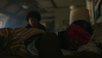 MG wakes Kaleb up, asking if he can see Sebastian, however Kaleb reveals that he can't, but to ask Sebastian what he wants. MG admits that Sebastian has come into contact with a tiny bit of blood — from the blood fountain — and now is able to reach out to weak-minded people, but is still desiccated. Sebastian wants Kaleb and MG to find his body and presumably awaken him.