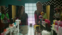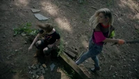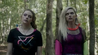Meanwhile, Hope and Lizzie realize that they are stuck in an alternate version of the 80s. They manage to cross the road to a clothing shop and change into something alike of the decade. Lizzie asks why Hope didn't tell everyone who she was when she returned from Malivore, but Hope tells her she was too busy saving the two. The two continue to die multiple times before the two find a "clue store". They approach the store to find themselves reunited with the Keeper. The Keeper reveals to them that she was once in their situation until she was dropped into Malivore by men in black — presumably Triad Industries — and is now the "Keeper of the Game". She tells the two that they play the game and get eaten by her "pet", or one of them takes her place and the other is set free. Both Hope and Lizzie refuse to take her place, which angers her, however the two run off as her pet approaches. As they try to evade the monster, Lizzie tells Hope that nobody is better off without her, Josie and Landon are just filling a void left behind by Hope's disappearance. She further reveals that she hallucinated a boyfriend, but cannot reveal further information as the two trigger a trip-wire and are killed.