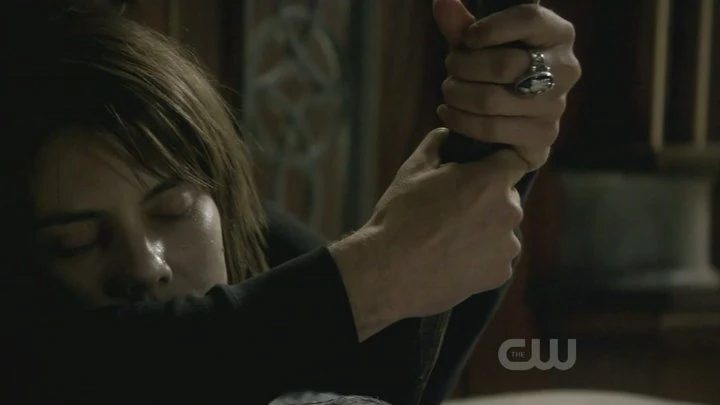 | Katherine killed Aimee Bradley by first partly breaking her spine paralyzing her below the waist and then completing the break. Caroline saved a compelled Matt from being killed in a fight with Tyler Lockwood. Sarah was killed accidentally by Tyler Lockwood after she, under Katherine's compulsion stabbed Tyler just above the heart. Tyler threw her off himself and Sarah struck her head on his father's desk. Jeremy Gilbert and Bonnie Bennett saved Elena by preventing Damon from staking Katherine as she had a spell cast on both herself and Elena by Lucy Bennett linking them together so that whatever harm Katherine suffers Elena would suffer as well. As a result Katherine was also saved by Jeremy's warning. Katherine is the villain for killing two people, putting Elena's life in danger and generally just using people.