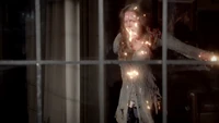 Elena is unmoved, so they go for round two. Caroline and Matt hang out outside. Rebekah drops by with food for Matt. She mentions that Matt is failing some classes. It's news to Caroline, so she goes home to get study supplies, but runs into Klaus outside. Bonnie asks Katherine for Silas' tombstone to drop the veil in two days on the full moon. "I said I'd help him and I've been hiding from him ever since, buying time," Bonnie says. She won't explain any further since Silas can read minds. Bonnie's the only one who can see his true face. Back at the house, Elena heals from her burns. Elena turns on Damon, saying being sired to him was awful and her love for him was fake. Her ropes burn off and Elena runs to the curtain and tears it down. She bursts into flames and they douse her with the extinguisher. "I'm the girl that you love, you wouldn't do anything to actually hurt me, you just proved that. So what do I have to be afraid of?" she asks. Outside, Damon and Stefan are frustrated they're not getting anywhere. Stefan suggests they get someone who really will hurt Elena: Katherine. She was just abandoned by Elijah and they think she'll enjoy the chance to torture Elena.