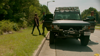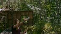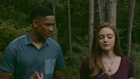 On Route 29, Alaric, Hope and Rafael pull over at the site of the explosion to look for clues. Hope doesn't see the point as she believes that Landon could be anywhere given the full days lead he has on them, however Rafael admits that he doesn't have any reason to run so should be around somewhere. Alaric hears a scream coming from the woods and, following it, finds a small woman dressed in a white dress hiding behind a tree. The woman looks scared and it is quickly realized that she survived the exploding bus and needs medical attention. Alaric tells Rafael and Hope to walk on but to not engage while he gets the woman help.