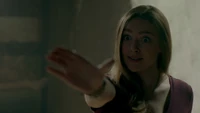In the same woods, Alaric is still attempting to make his way to the highway and contact medical help for the mysterious woman. Alaric raises his phone to call Dorian, but the woman grabs his phone and puts it into the pocket of her dress. When Alaric tries to take back the phone, the woman takes his watch and turns to run, with Alaric chasing after her. He finally catches up, grabbing the woman's arm to turn her around, which causes her to growl and her eyes flash a bright orange. It seems as though the woman is about to scream, but instead exhales a stream of fire, forcing Alaric to duck away from the woman to safety. When he returns to his feet, the woman has vanished before him, leaving him alone in the wood.