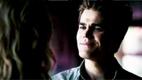 Back at the house, in the safe Stefan hyperventilates, saying he feels like he's dying. Katherine tells Stefan she believes there is something to the doppelgänger prophecy and Stefan wants to get far away from Damon and Elena and she's just the latest excuse to stay in town. Stefan starts choking her. She tells him she thinks he's choosing to focus on the physical pain of drowning in the safe instead of the emotional pain of Elena breaking his heart. She turns to offer Stefan her neck and urges him to fight it. She promises she's there with him. They are dangerously close to kissing when Caroline opens the safe, worried about how quiet it got. Out of the safe, Stefan seems to look at Katherine differently.