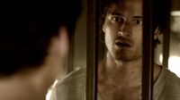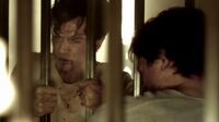 Elena wakes up in a cell next to Damon. Damon confesses he's been there before and tells her about Whitmore's torture, including cutting up pieces of them every day. He was there for about five years. He made a friend, Enzo, a soldier in Europe during WWII, who was also a vampire. Whitmore was working in a battlefield hospital overseas when he discovered Enzo was a vampire and locked him in a coffin and shipped him overseas. He'd been locked up ten years. Enzo tried to teach Damon how to survive, including picturing exactly how he'd get his revenge. Elena tells Damon that her dad worked with Whitmore and was an Augustine. She doesn't want to believe he'd be part of a place that would cut Damon's eyes out.