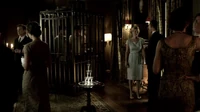 Enzo keeps Damon going by talking to him about a girl named Maggie that he liked. Whitmore interrupts, asking who's next. He goes for Damon, but Enzo volunteers. Damon listens to him scream from in his cell until he's finally brought back in a bloody heap. Damon asks Whitmore why he's doing this and he explains he's trying to understand vampires on a cellular level to make use of them. Back in the present, Elena thinks Stefan will figure it out and come rescue them, but Damon never told him he was locked up—he didn't want to give him more to feel guilty about. Damon explains how he escaped. They let the vampires out once a year for the Augustine's New Year's Eve party to show them off. They were weak from vervain and captivity. Whitmore demonstrates vampire blood's healing powers, using Mrs. Fell as a volunteer. She drinks vampire blood to heal her hand after he cuts it. Enzo comes up with a plan, suggesting one of them drink both of their daily rations of blood for a year so that when they're let out next New Year's Eve, one of them will have the strength to fight. They play rock paper scissors and Damon wins. Elena wants to know what happened, but Damon is not forthcoming with the details, saying only that it wasn't pretty.