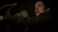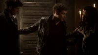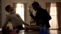 Elijah wakes up and puts a knife into Finn. Finn uses his magic against Elijah, and Elijah gets thrown against the wall. Gas leaks across the house.