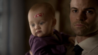 In the bell tower of St. Louis Cathedral, they find it empty except for the remnants of a spell. Finn has already found Hope, they realize, and simply distracted them by "needing" their blood. Kol sees a runic tile with the symbol meaning "baby," and realizes Hope is still alive.