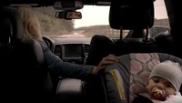 The car starts back up, and Camille looks in the backseat at Hope.