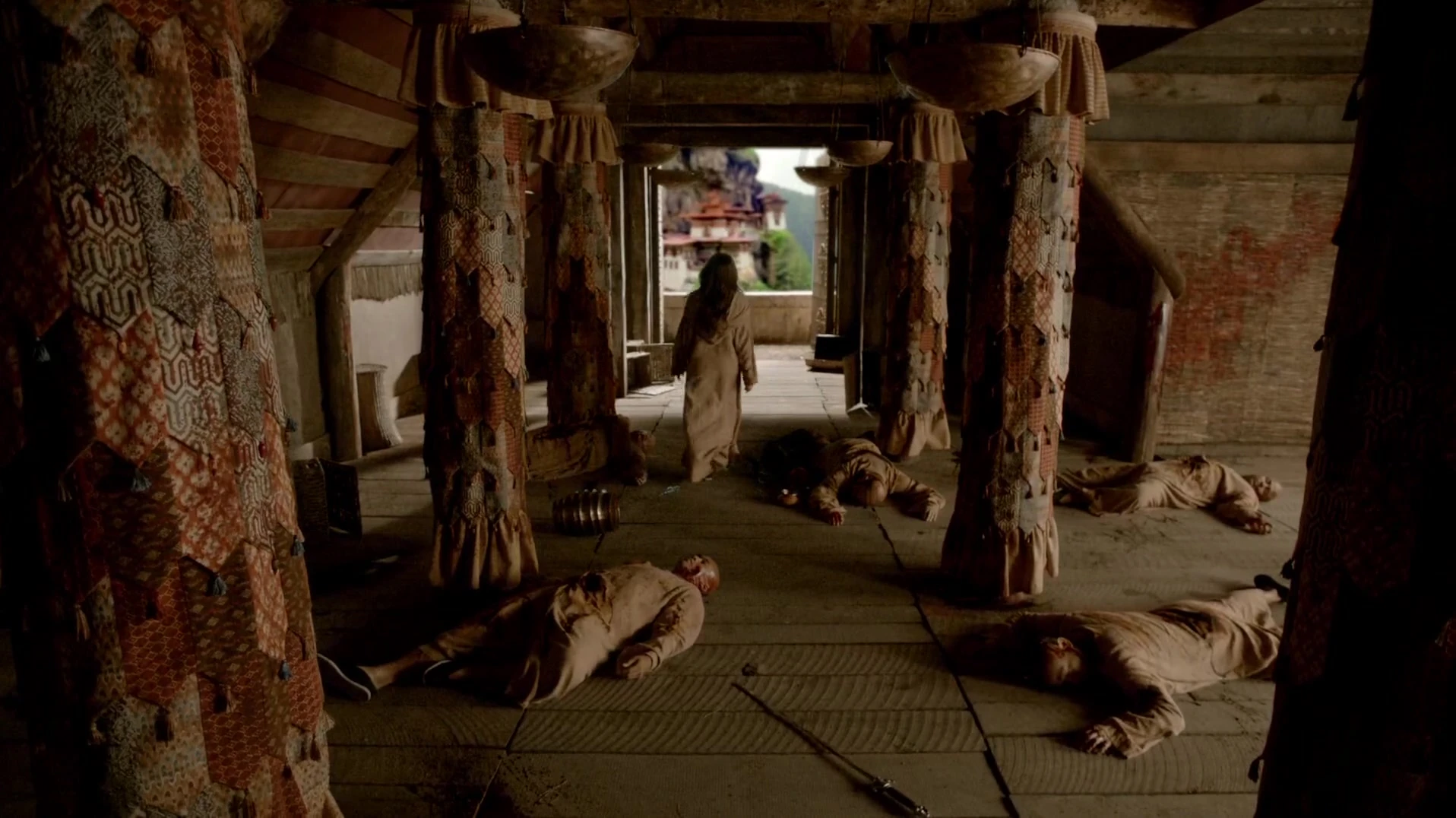 | In a flashback to Southern France 1002 A.D. the Mikaelson siblings (Finn, Elijah, Niklaus, Kol and Rebekah) feed on at least four peasants.