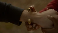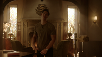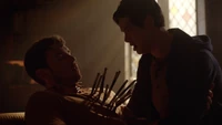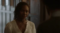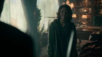 Hope remains trapped in the chambre de chasse. She tries a key labeled Klaus but to no avail. As she struggles, Lizzie appears to her, having entered the astral plane to taunt her. Unlike her first attempt, she's determined to kill her now. Since she's practically an expert on mental prisons by now, she gives her a hint. Getting out is always about getting to the root of your problems. Plucking a key that has Hope written on it, she can leave whenever she wants and explains that she'll give her a goodbye before she kills her. Hope doesn't believe that she can kill her, but Lizzie shows her a whittled stake that holds up her hair. It was a large Red Oak tree and she made more than one stake. Vamping to a door, she leaves the chambre de chasse as the keys fall and scatter to the floor.