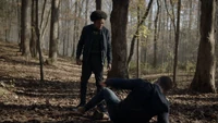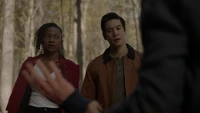 TEAMWORK — Cleo, MG and Jed work together on an unusual mission. Alaric, Landon, and Ted figure out what is next for them. Meanwhile, an unexpected source takes Hope by surprise. Also appearing Lizzie, Kaleb, and Ethan.[2]