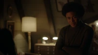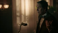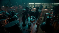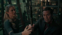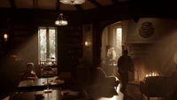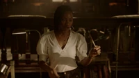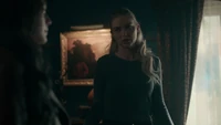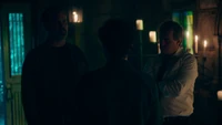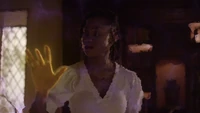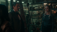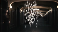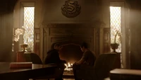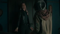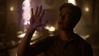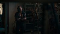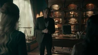 In Professor Vardemus' storage room of various artifacts, he's looking for something to help Hope, though she demands for him to hurry up. She has places to go and people to kill. She's tried everything to destroy the sarcophagus, and nothing has worked. Rupert suggests freeing Lizzie as she's a siphon witch and could easily siphon off any magic that protects it. She refuses too, explaining that she killed Lizzie and now she's technically in transition. She's placed her under a sleeping spell and waiting for her to starve and die. Rupert flips the conversation back to her, wondering how becoming a tribrid has made her so cruel. Threatening him again, she explains that her humanity is off. Having found what he's been searching for, he explains that the Pentelic marble should be able to absorb the sarcophagus' powers, as it was said to centuries ago in ancient Greece. He hands her a jar and she opens it. Their minds are transported into another world, a Chambre de Chasse. Angered, she threatens to kill Rupert. He retorts that should she get free, then hopefully he and Lizzie will be long gone and rushes out of one of the many doors, leaving Hope trapped.